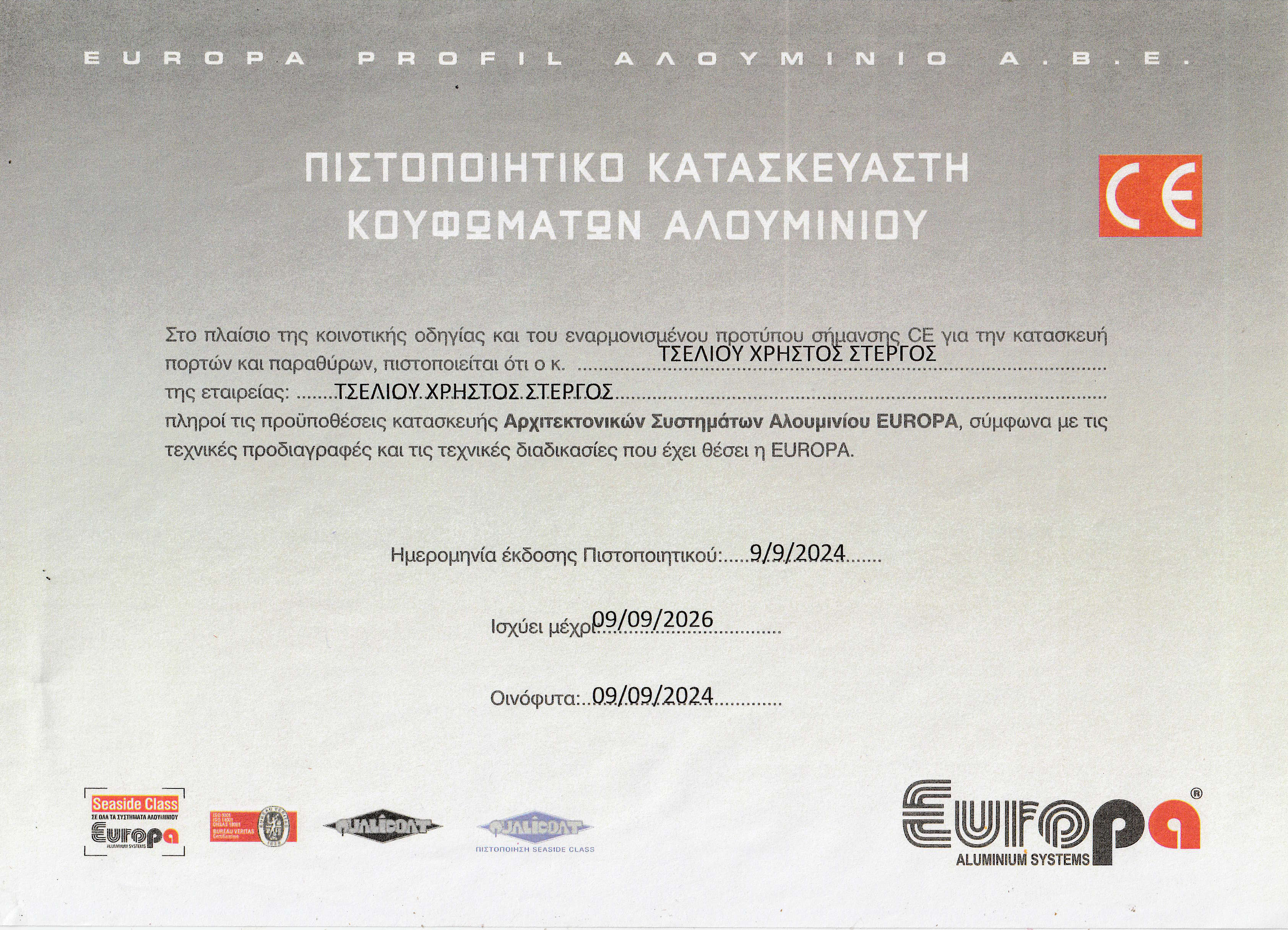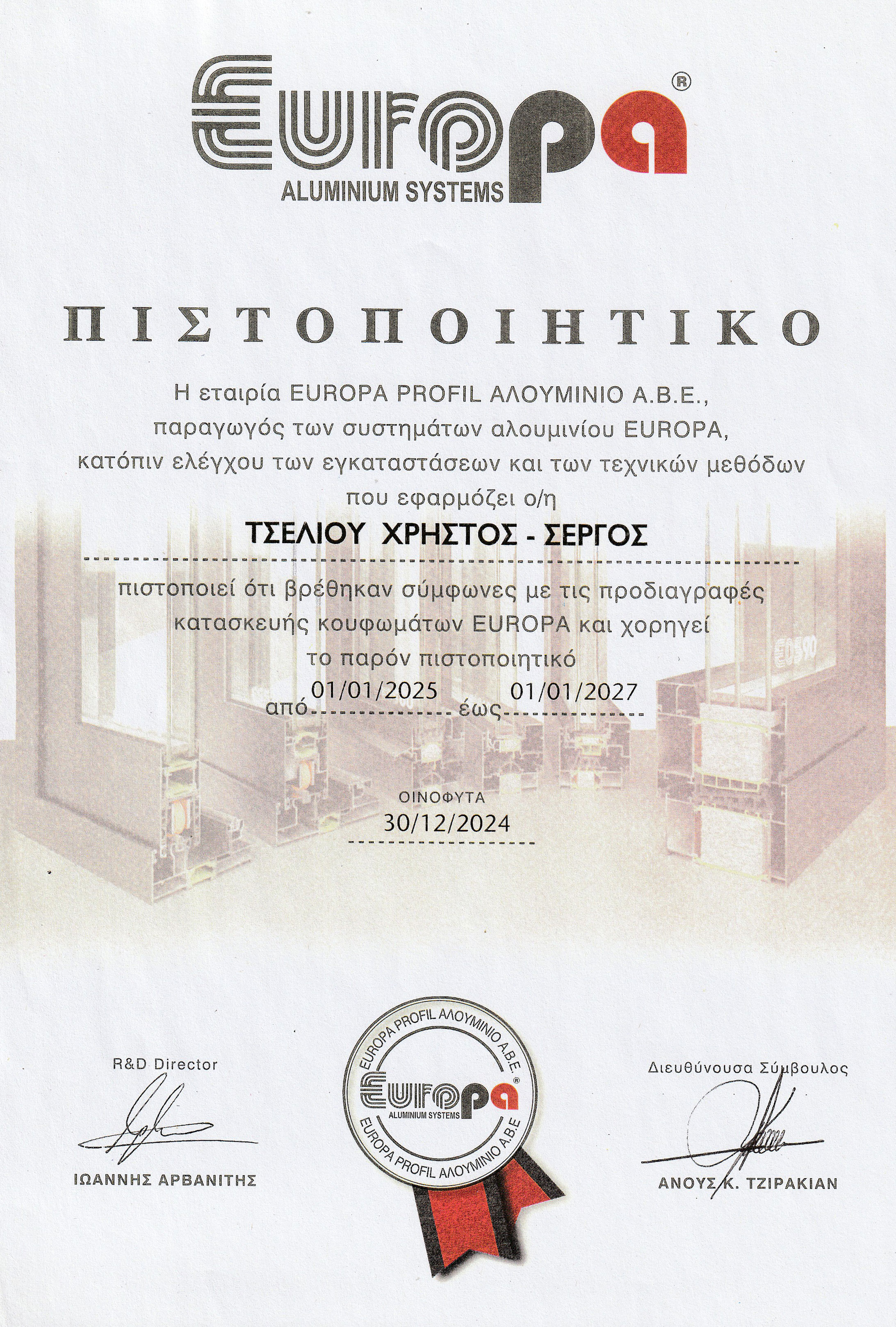 ΠΙΣΤΟΠΟΙΗΤΙΚΟ EUROPA